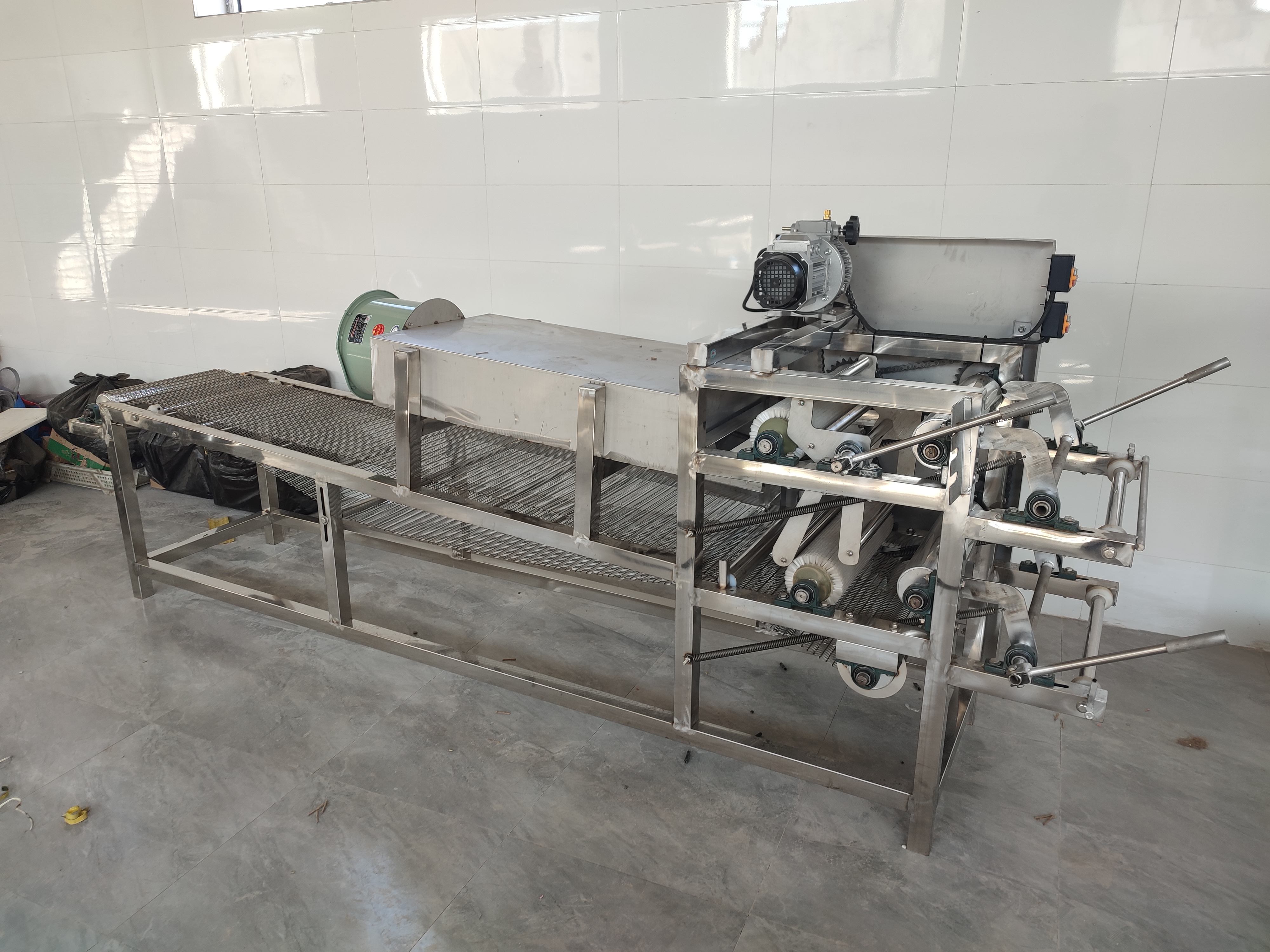 豆腐皮雙剝皮機(jī)七層九米攤晾線長9米,可選雙剝皮機(jī)五層13米豆腐皮攤晾線,根據(jù)場(chǎng)地來選擇攤晾線